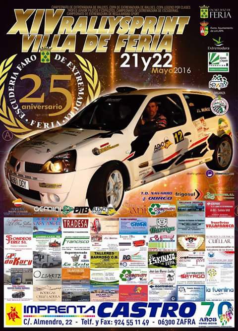 Eduardo Noriego y Daniel Canelo del Motor Club Almendralejo se han hecho esta tarde con el triunfo en el XIV Rallysprint Villa de Feria, segunda cita puntuable para el Regional de Extremadura de Asfalto. Los vencedores emplearon un tiempo global de 27:01,533 minutos en completar los 47,3 kilómetros cronometrados en los seis tramos que componían la carrera a los mandos de su Peugeot 207 S2000. En segunda posición finalizaron los andaluces José Antonio Caballero y Víctor Barba de Co 2013 Sport con su Mitsubishi Lancer Evo X, quienes tras una avería en el último tramo acabaron a 01:11,710 minutos de los vencedores. La tercera plaza de la general la coparon los componentes de Ráfagas Racing, Pablo Gómez y Fran Colchón con un Peugeot 106 Maxi a 01:33,108 minutos de la cabeza. La competición resultó dura para los 53 vehículos participantes, no en vano hasta 12 coches no pudieron finalizar la carrera por diversas averías y circunstancias propias de la carrera. La cita también era también valedera para los Campeonatos de Extremadura de Regularidad Sport de medias Bajas y de medias Altas y de Escuderías, así como para la Copas Legend por Clases.